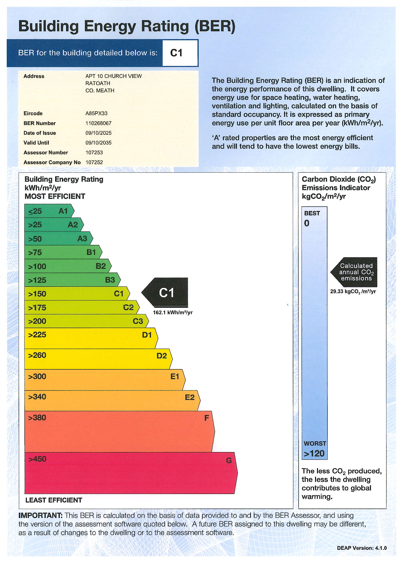 2 BEDROOM 2 BATHROOM 65sqm APARTMENT GFCH DG WINDOWS DESIGNATED CAR SPACE BER = C1 3 BALCONIES