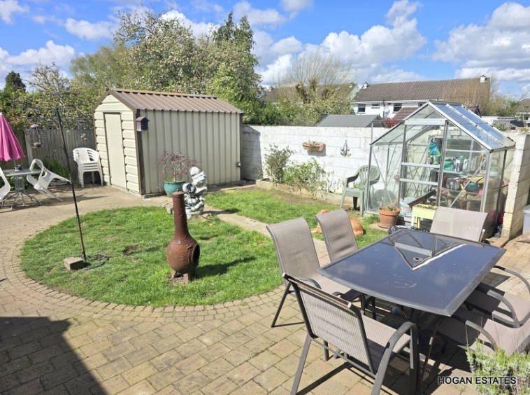 The accommodation is bright, spacious and well-proportioned throughout, perfectly suited to modern family living. The property benefits from uPVC double glazed windows and doors together with gas-fired central heating, ensuring comfort and efficiency all year round. To the rear lies a fabulous west-facing rear garden — a private, sun-filled space ideal for outdoor dining, entertaining and enjoying long summer evenings. The back garden also has the benefit of a steel garden shed which is fully equipped, electrically insulated and comes with a fridge freezer and clothes drier. The rear garden backs onto a large orchard, which means that the house is not overlooked to the rear. In the sitting room there is a high-performance wood burning fire.