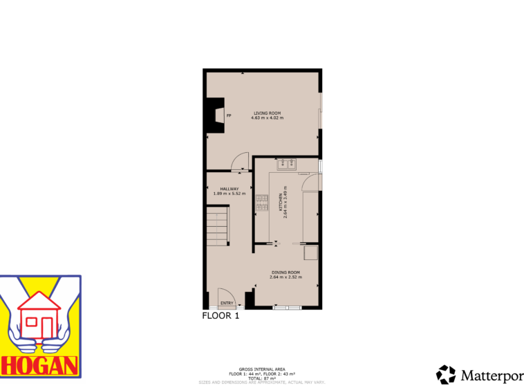 The accommodation comprises an inviting entrance hallway, a spacious lounge with an open fireplace, and a well‑proportioned kitchen/dining room overlooking the rear garden. Upstairs features three bedrooms—two generous doubles and one single—along with a large family bathroom. The rear garden provides a peaceful outdoor retreat, ideal for relaxing or entertaining.