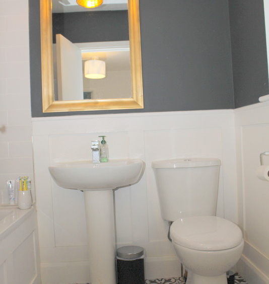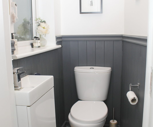 Located off the kitchen is a well-appointed utility room and guest WC, finished with attractive wood panelling.