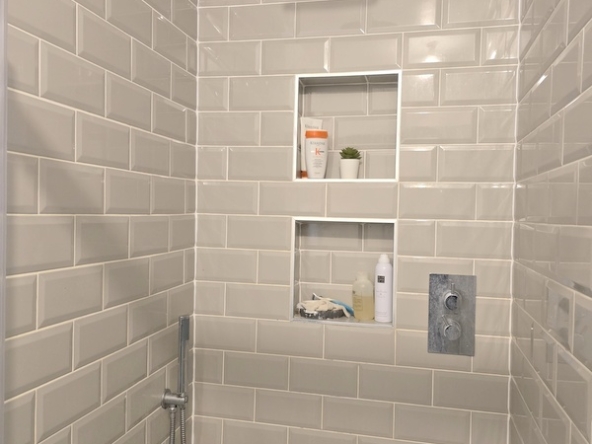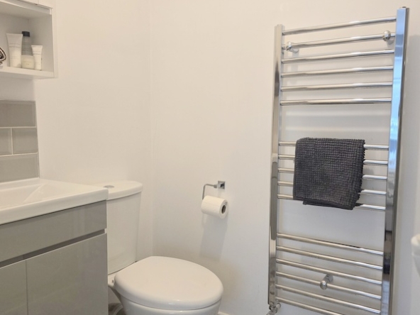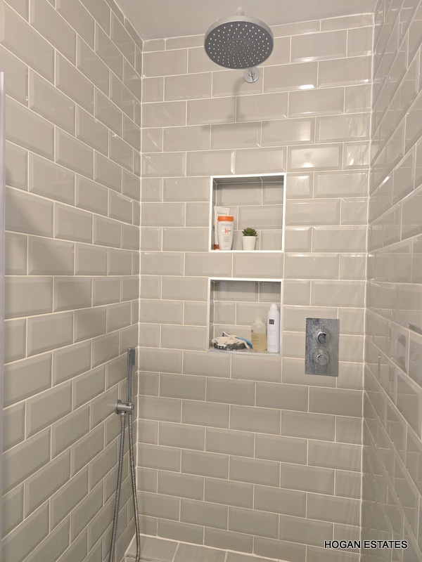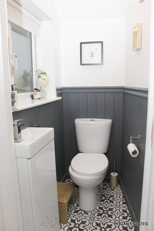 Upstairs, the landing is naturally bright thanks to a window over the stairwell. There are two generously proportioned double bedrooms and one single bedroom. The main bedroom features a stylish ensuite and additional alcove storage. The family bathroom is beautifully finished with elegant tiling and wood panelling and includes an electric shower over the bath. The attic is accessed via a Stira staircase and is fully insulated and floored, offering excellent storage potential.