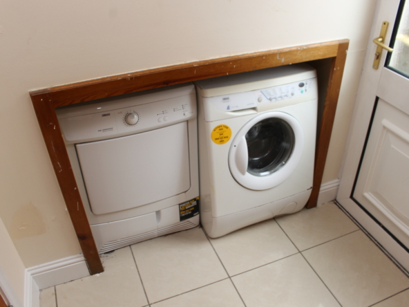 The house is unfurnished but comes with a fully fitted modern kitchen, utility room with washing machine and dryer, and fitted wardrobes and cupboards in three of the bedrooms.